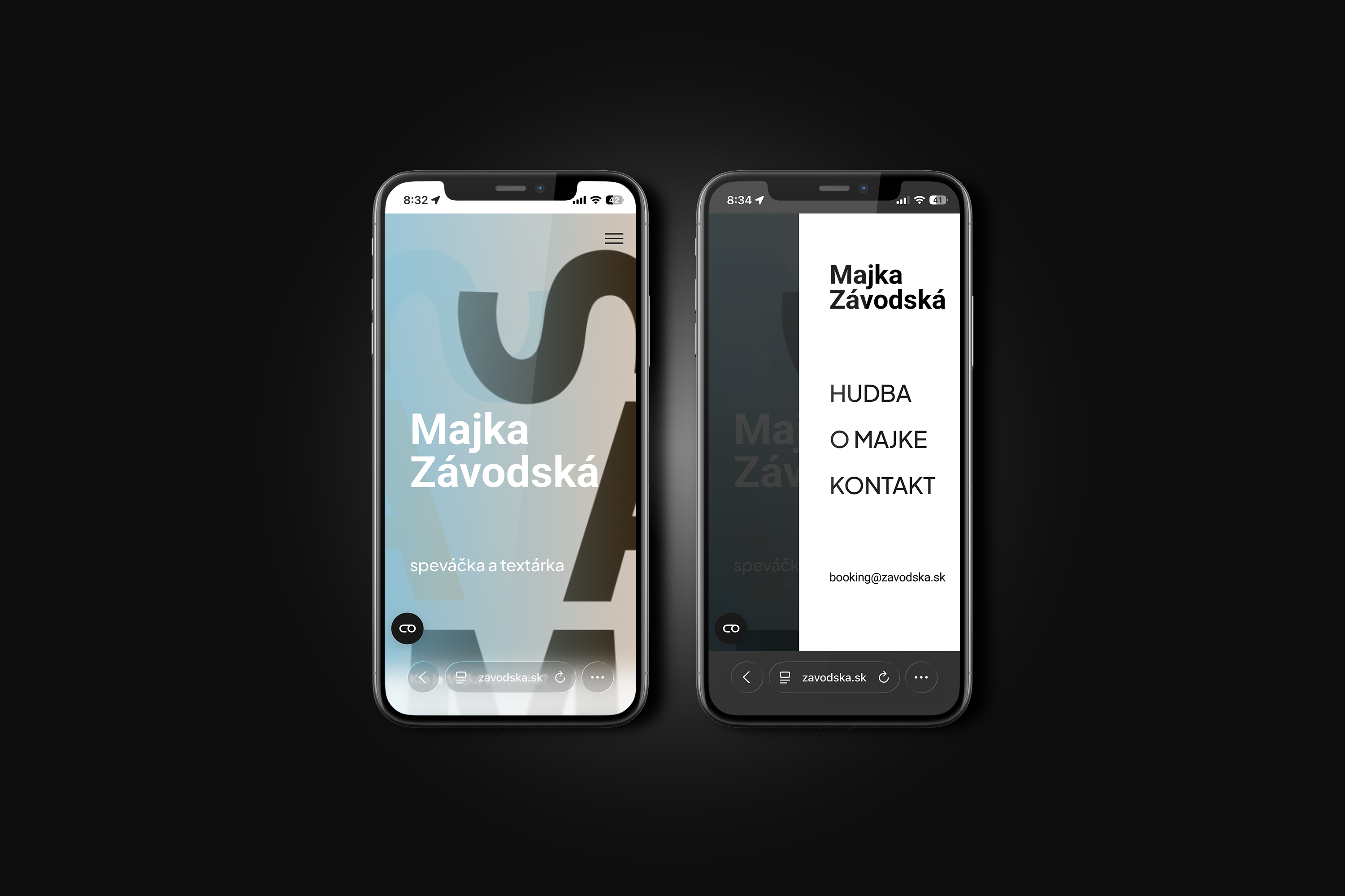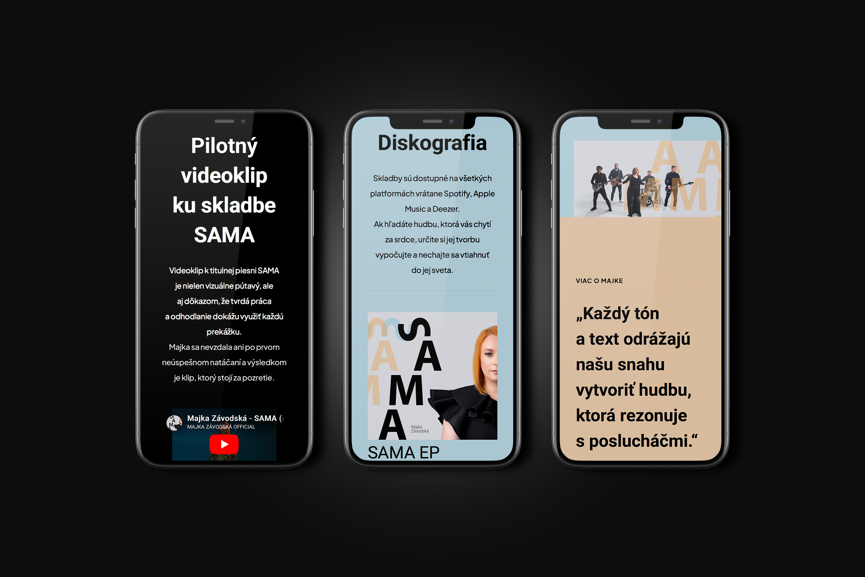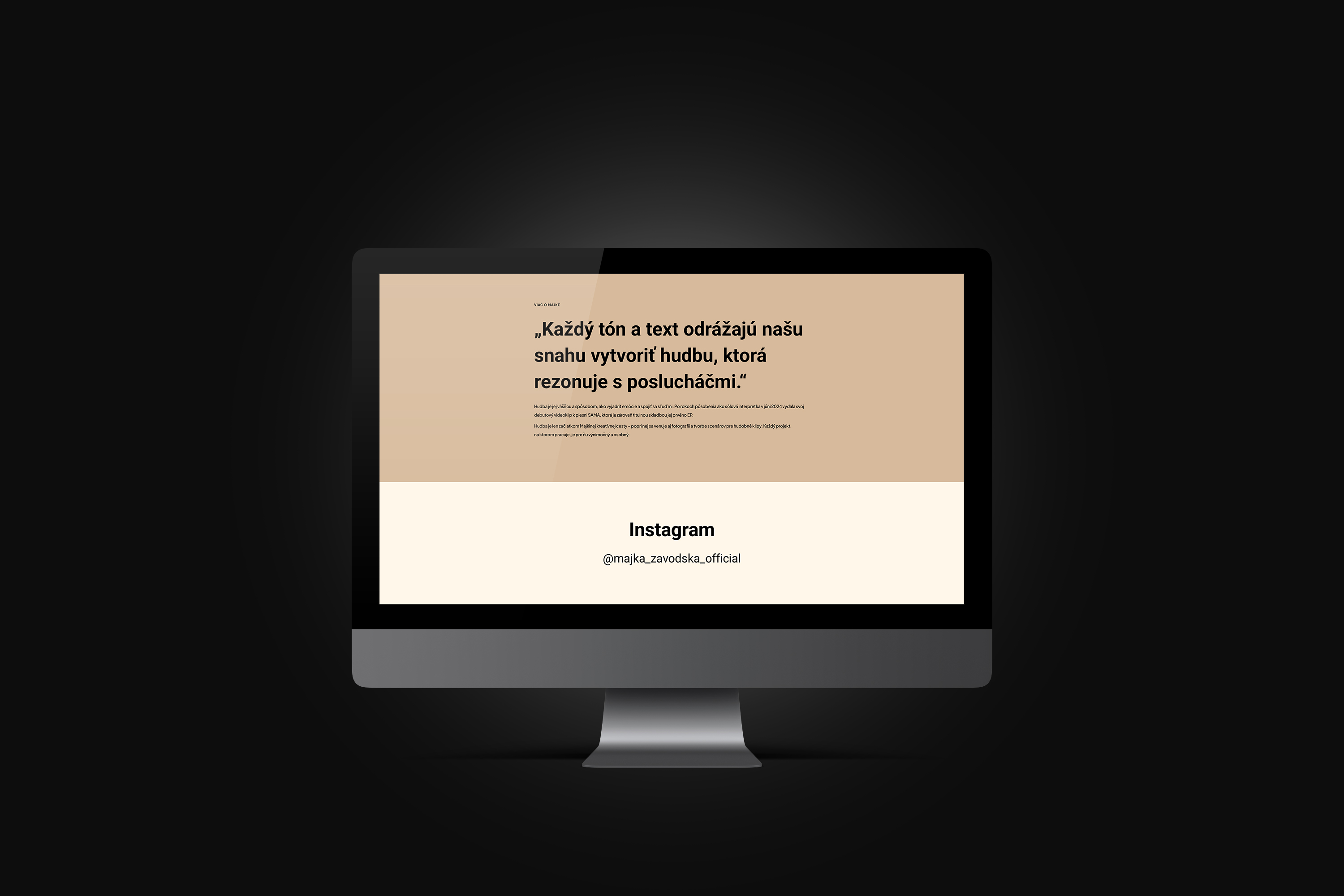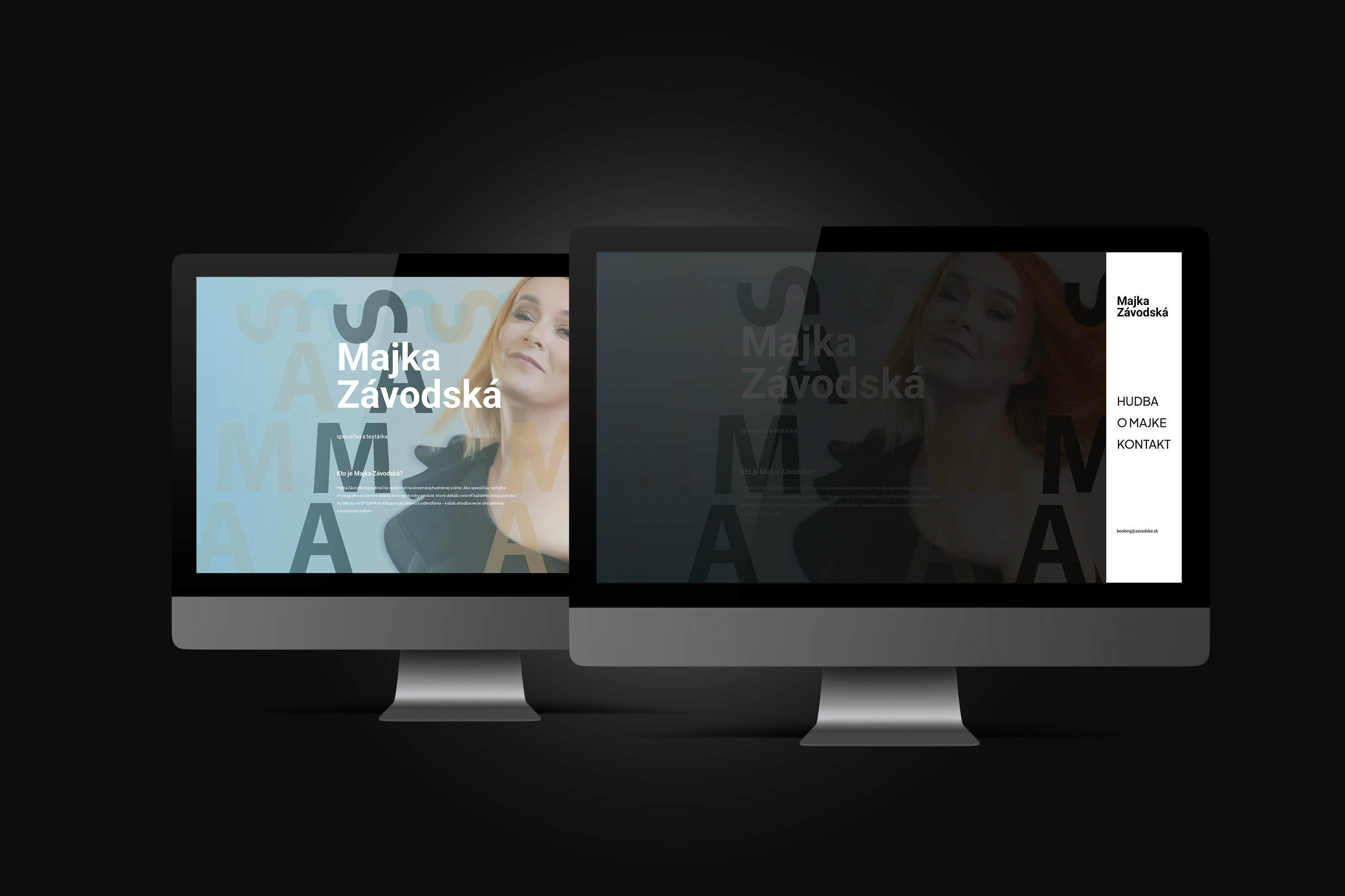 Web stránku sme navrhli ako prehľadnú „one-page“ prezentáciu a doplnili sme ju o odkazy na hudobné platformy a základným info o Majke. Navigácia je intuitívna – návštevníci si ľahko prejdú stručné info až po kontakt pre booking. Dizajn sa odrazil od grafiky pre EP – CD.